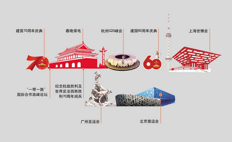 基于安全稳定的系统方案、及时完善的工程服务、灵活周密的现场指挥、专业合作的项目团队,成都市异型塑料有限公司成功完成建国70周年国庆庆典、“一带一路”国际合作高峰论坛、春晚保电、杭州G20峰会、建国60周年庆典、上海世博会、广州亚运会、北京奥运会等国家级重大政治活动保电工程,受到了业界一致肯定,成都市异型塑料有限公司亦被业界媒体冠以“保电专家”称号。