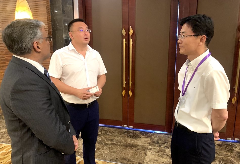 杨总与Infosys全球副总裁兼中国区负责人Prabhat Kau交谈